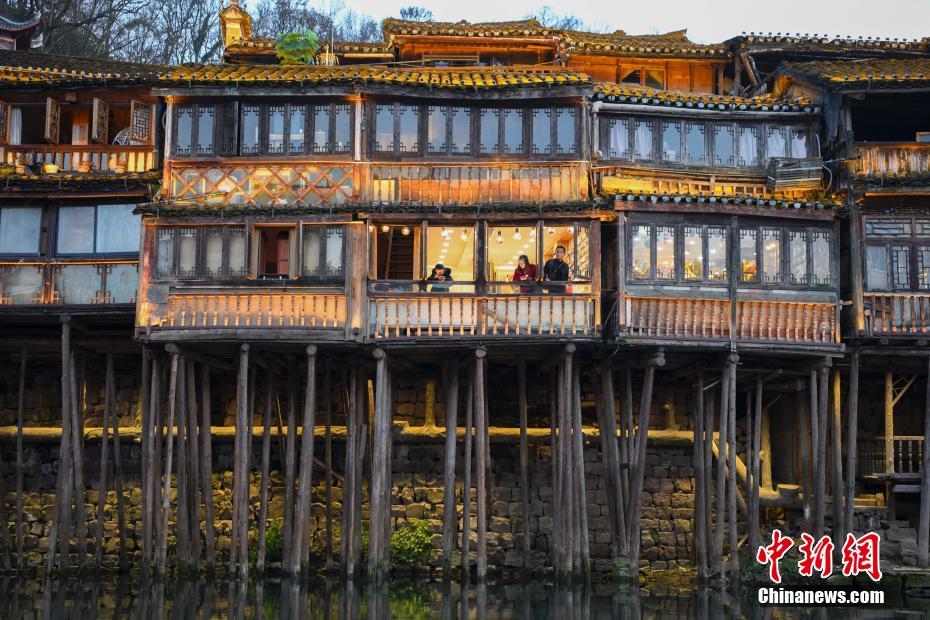 Touristen erfreuen sich an der schönen Landschaft in Fenghuang.