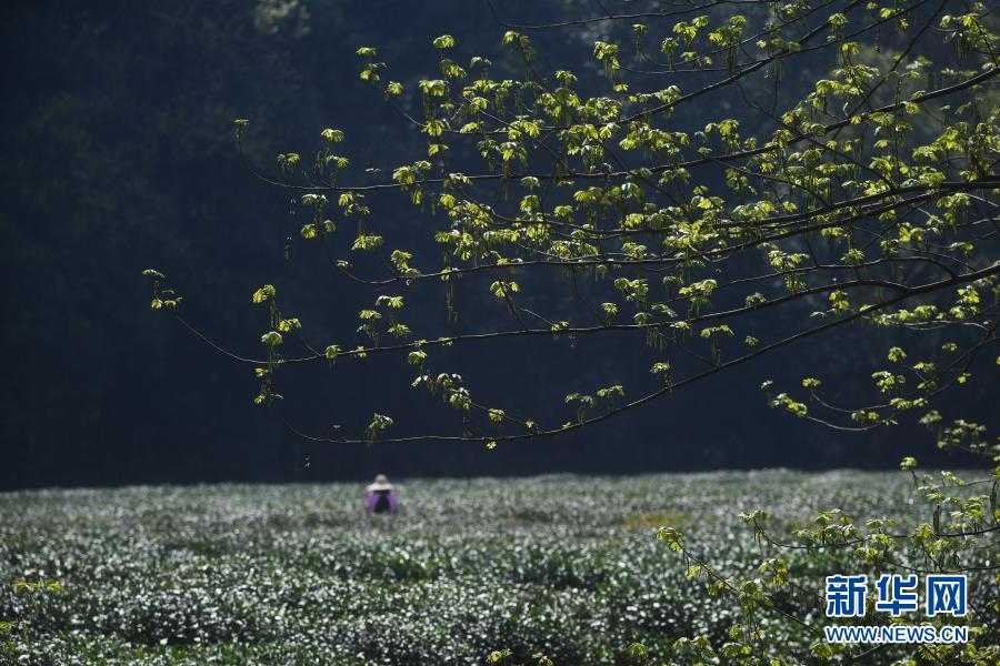 Eine Frau pflückt Tee-Blätter in einer Teeplantage im Dorf Meijiawu (Xinhua/ Xu Yi)