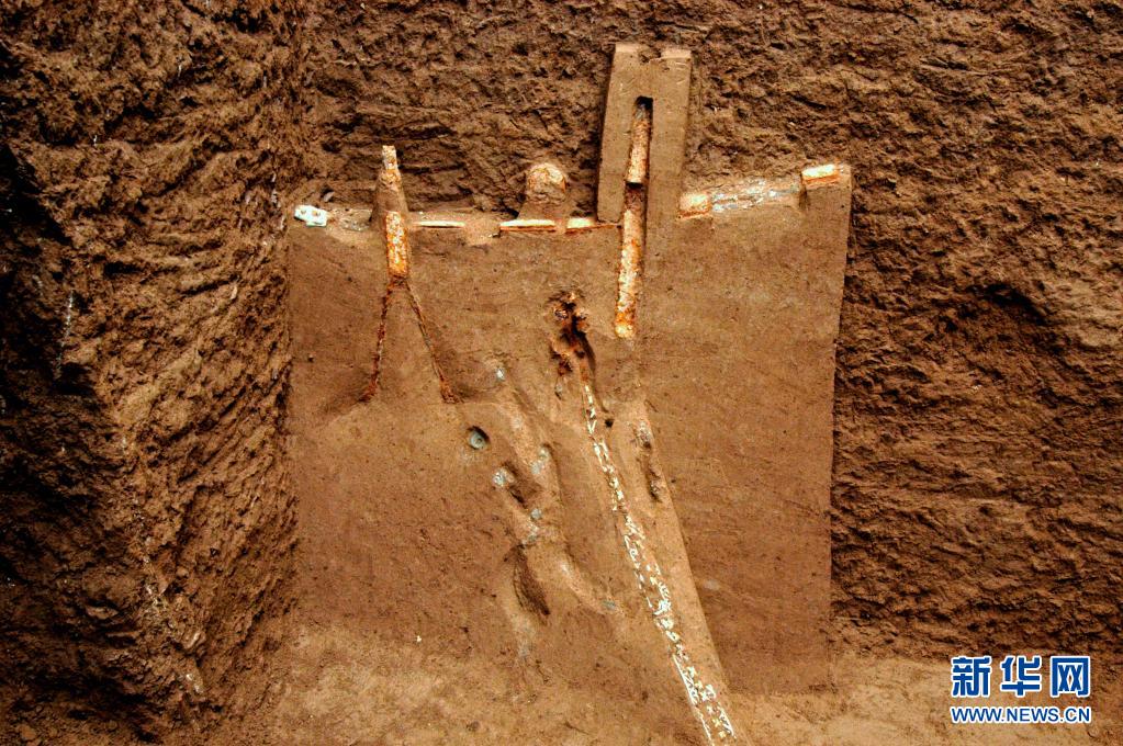 Das Bild zeigt die 2007 entdeckten Teile einer Kutsche aus der Zeit der Streitenden Reiche.