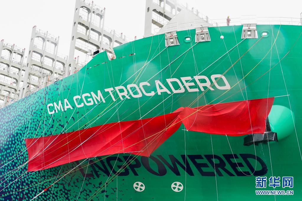 Von China hergestelltes supergroßes Containerschiff mit Hybridantrieb an französische Reederei übergeben