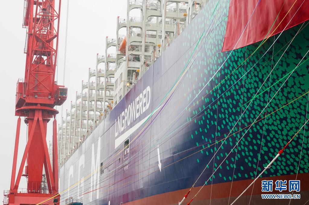 Von China hergestelltes supergroßes Containerschiff mit Hybridantrieb an französische Reederei übergeben