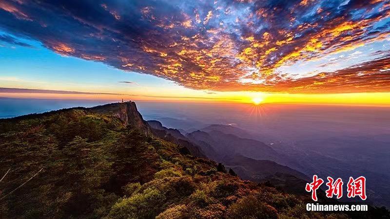 Das am 27. Mai aufgenommene Foto zeigt den Gipfel der Zehntausend Buddhas auf dem höchsten Punkt des Berges Emei in der südwestchinesischen Provinz Sichuan. (Foto zur Verfügung gestellt von China News Service)