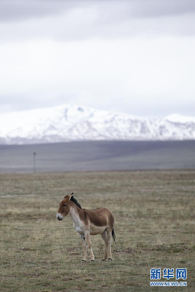 Ein Tibet-Wildesel in der Zone der Gelben-Flussquelle im Nationalpark Sanjiangyuan. (25. Mai)