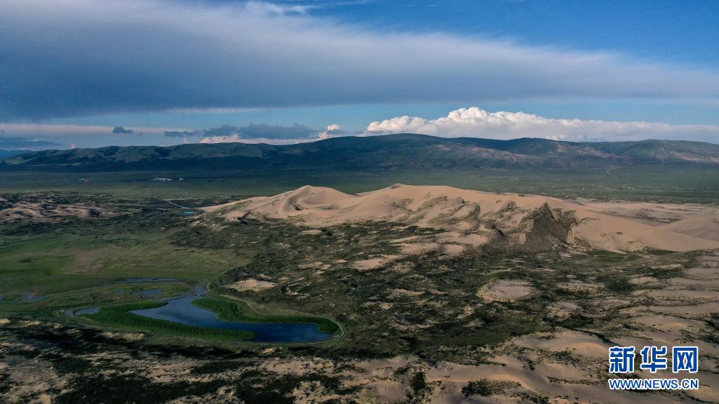Ein Drohnenfoto von einem Teil der Shadao-Insel am Qinghai-See. (28. Juli 2020)