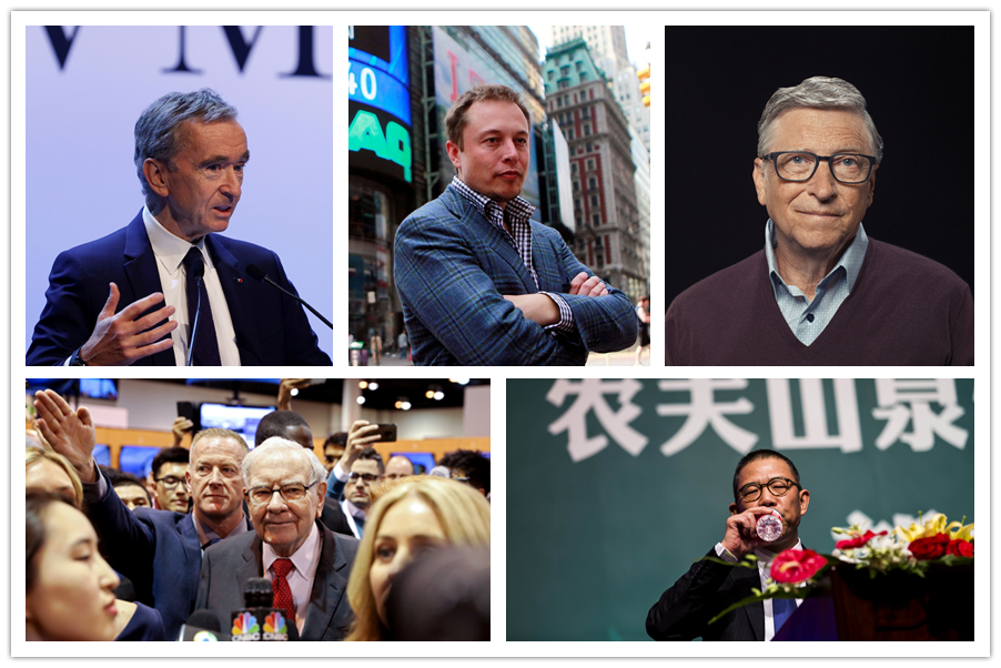 Amazon-Gründer Jeff Bezos, der reichste Mann des letzten Jahres, rangiert mit 189 Milliarden US-Dollar auf Platz zwei, gefolgt von LVMH-CEO Bernard Arnault, dem „König des Luxus" (114 Milliarden US-Dollar) und Bill Gates (110 Milliarden US-Dollar).