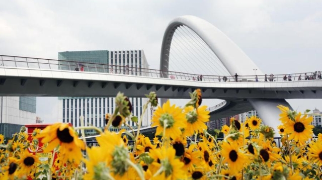 Eine neue Fußgängerbrücke über den Perlfluss wurde am Freitag in Guangzhou offiziell eingeweiht, wodurch die Metropole in der südchinesischen Provinz Guangdong eine neue ikonische Struktur bekommt.