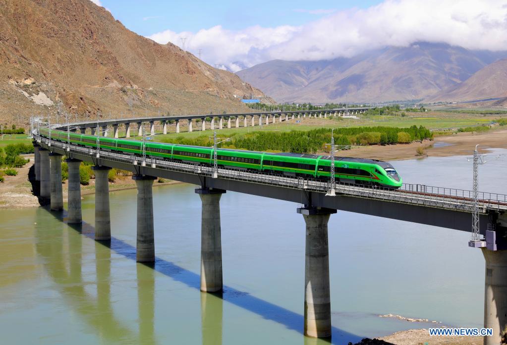 „Fuxing“-Hochgeschwindigkeitszug fährt erstmals auf neuer Bahnstrecke in Tibet