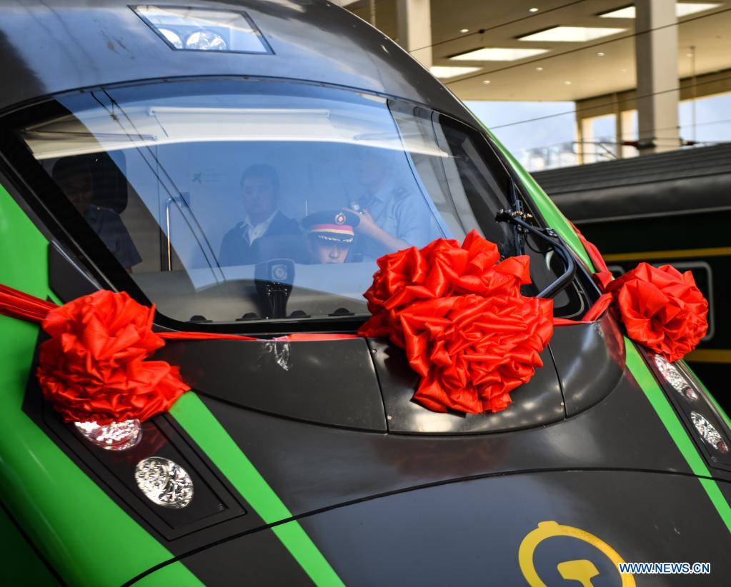 Der „Fuxing“-Hochgeschwindigkeitszug steht vor seinem Debüt auf der Lhasa-Nyingchi-Eisenbahn in Lhasa (Xinhua/Purbu Zhaxi)