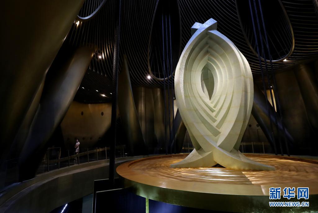 Auf dem Schwingungsdämpfer steht die sieben Tonnen schwere Skulptur „Shanghai Eye of Wisdom“.