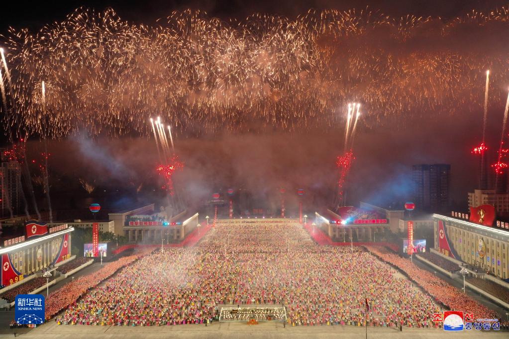 Dieses von der KCNA am 9. September zur Verfügung gestellte Bild zeigt das Feuerwerk, das nach der Parade gezündet wurde.