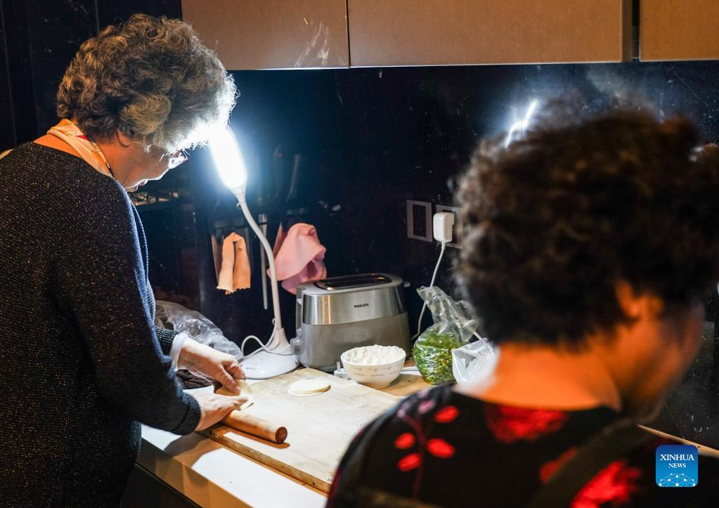 Li (L) macht Knödel zu Hause in Beijing. 11. Oktober 2021