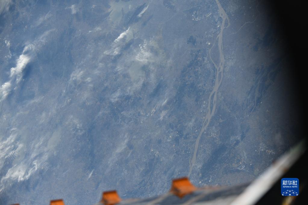 Ein Foto von der Erde, das von der chinesischen Taikonautin Wang Yaping in der Raumstation Tiangong aufgenommen wird.