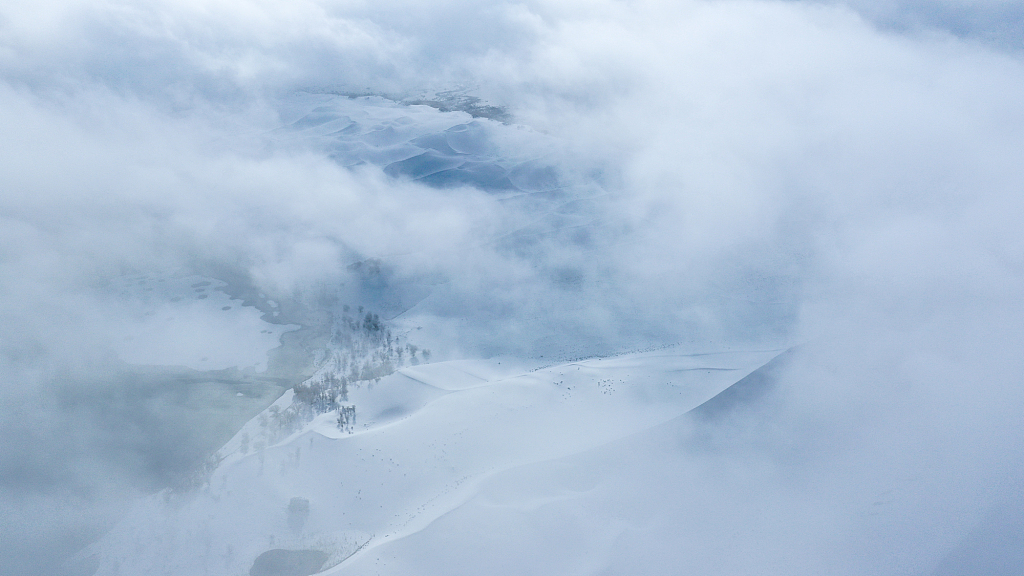 Der Nebel zieht über die Wüste, so dass die Pappeln und die Seen im stetigen Wechsel erscheinen und wieder verschwinden – wie in einer Märchenwelt. (Foto von VCG)