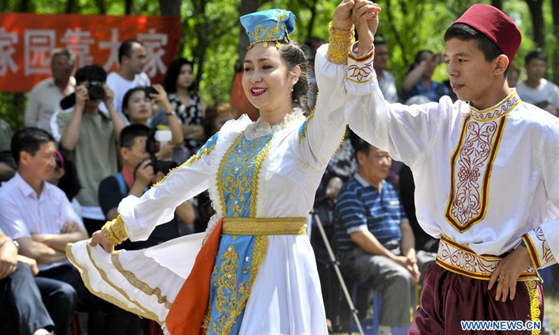 Menschen tanzen am 22. Juli 2017 während des Saban-Festes der ethnischen Gruppe der Tataren in Tacheng im nordwestchinesischen Uigurischen Autonomen Gebiet Xinjiang. (Foto: Xinhua/Xinjiang)