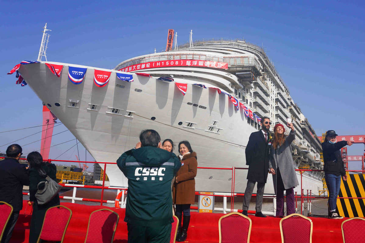 Chinas erstes selbst gebautes Kreuzfahrtschiff wurde am Freitagmorgen in der Werft der Shanghai Waigaoqiao Shipbuilding Co Ltd zu Wasser gelassen, was einen neuen Meilenstein im Bau des Schiffes markiert.