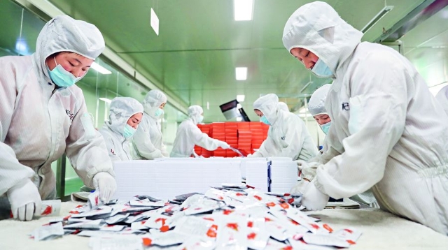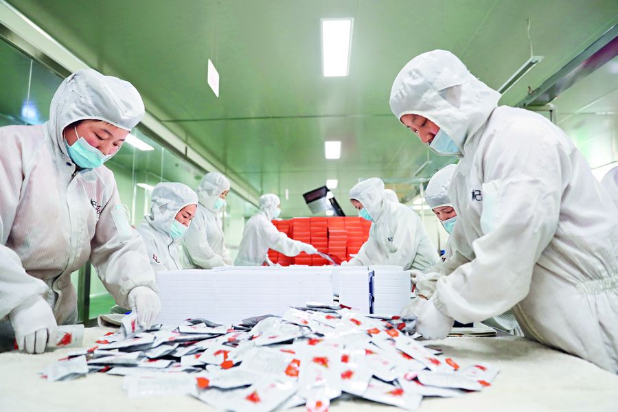 Mit Wolfsbeeren zum Wohlstand: In dieser Anlage in der Stadt Zhongwei im Autonomen Gebiet Ningxia der Hui-Nationalität werden Gouji-Beeren verarbeitet. Die Industrie zur Verarbeitung chinesischer Kräuter und Gewächse floriert zunehmend und hat das Einkommen der Einheimischen hier deutlich gesteigert.