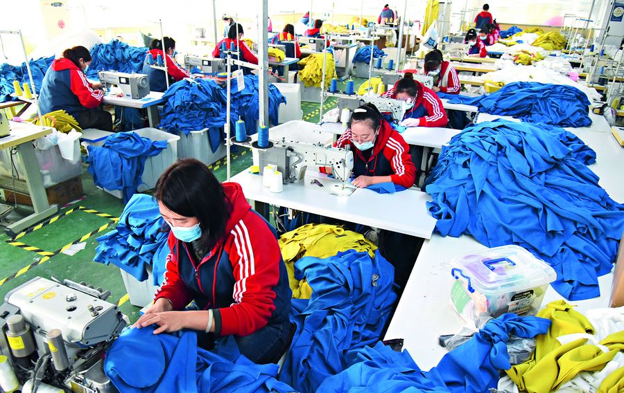Order aus Übersee: In dieser kleinen Textilfabrik in Lianyungang, Provinz Jiangsu, sind die Arbeiter mit der Ausführung eines Auftrags aus dem Ausland beschäftigt.
