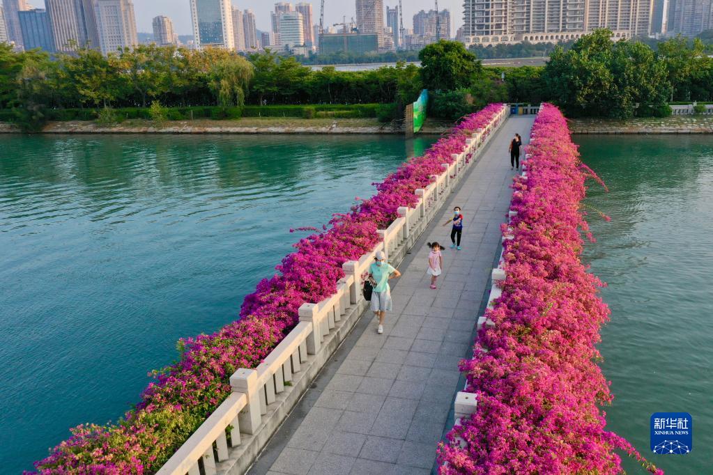 Menschen genießen ihre Freizeit in einem Park in Xiamen in der südostchinesischen Provinz Fujian. (9. September)