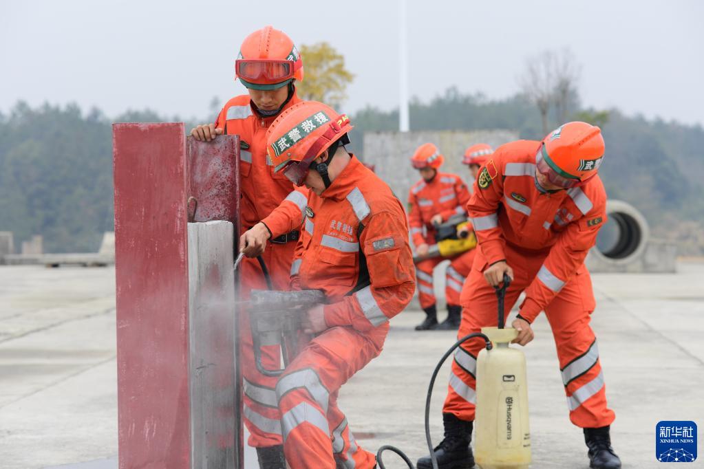 Am 4. Januar durchbrechen Offiziere und Soldaten eine Betonmauer im Rahmen einer Rettungstrainingseinheit in der Provinz Jiangxi. (Foto Cao Xianxun/Xinhua)