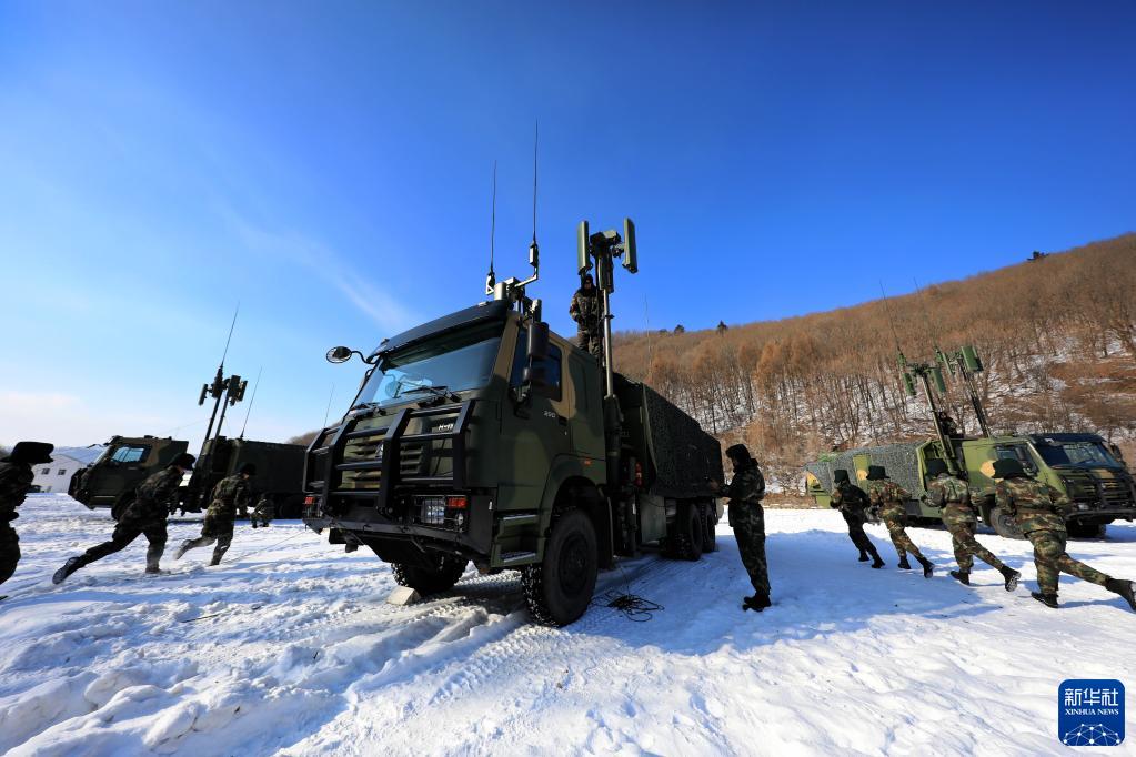 Am 4. Januar begibt sich eine Brigade des Kommunikationskommandos der strategischen Raketentruppen (PLARF) zur Übung auf die vereisten Schneefelder. (Foto von Chen Hao/Xinhua)