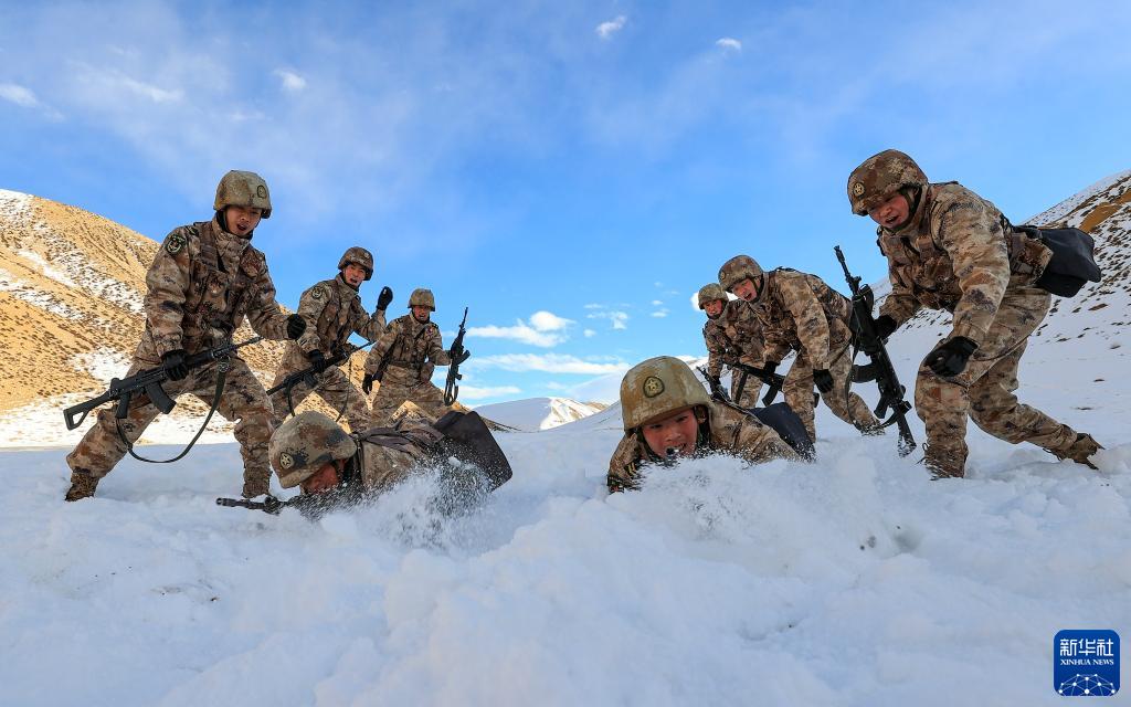 Am 4. Januar führen Offiziere und Soldaten im Grenzgebiet in Tibet einen taktischen Wettkampf im Schnee durch. (Foto von Liu Xiaodong/Xinhua)