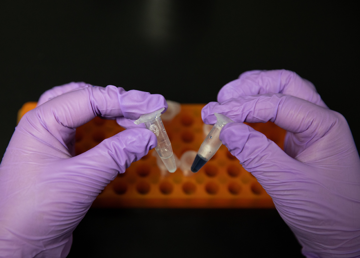 Das am 16. September aufgenommene Foto zeigt eine Probe synthetisierter Stärke in einem Labor des Tianjin-Instituts für industrielle Biotechnologie der Chinesischen Akademie der Wissenschaften.