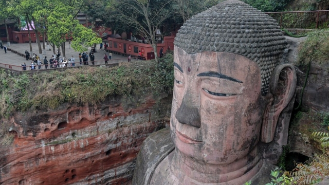 Die Buddha-Statue, die in eine Klippe im Berg Leshan gemeißelt wurde und sich über drei zusammenlaufenden Flüssen befindet, wurde über einen Zeitraum von 90 Jahren erbaut, beginnend im Jahr 713 während der Tang-Dynastie (618-907). Die Experten kamen zu dem Schluss, dass neben vielen anderen Faktoren Schäden durch Wasser, Regen und Feuchtigkeit am stärksten zur Degradation beigetragen haben. Der Buddha von Leshan wurde 1996 in die Liste des UNESCO-Weltkulturerbes aufgenommen.