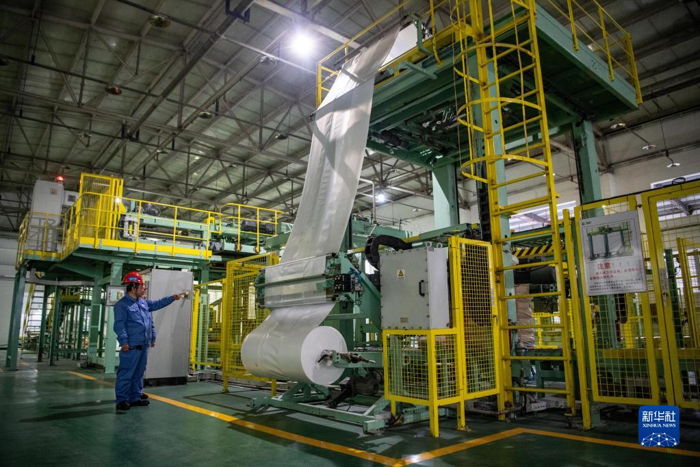 Mitarbeiter kontrollieren die Verpackung der Polyvinylalkohol-Produkte. (19. Februar, Xinhua)