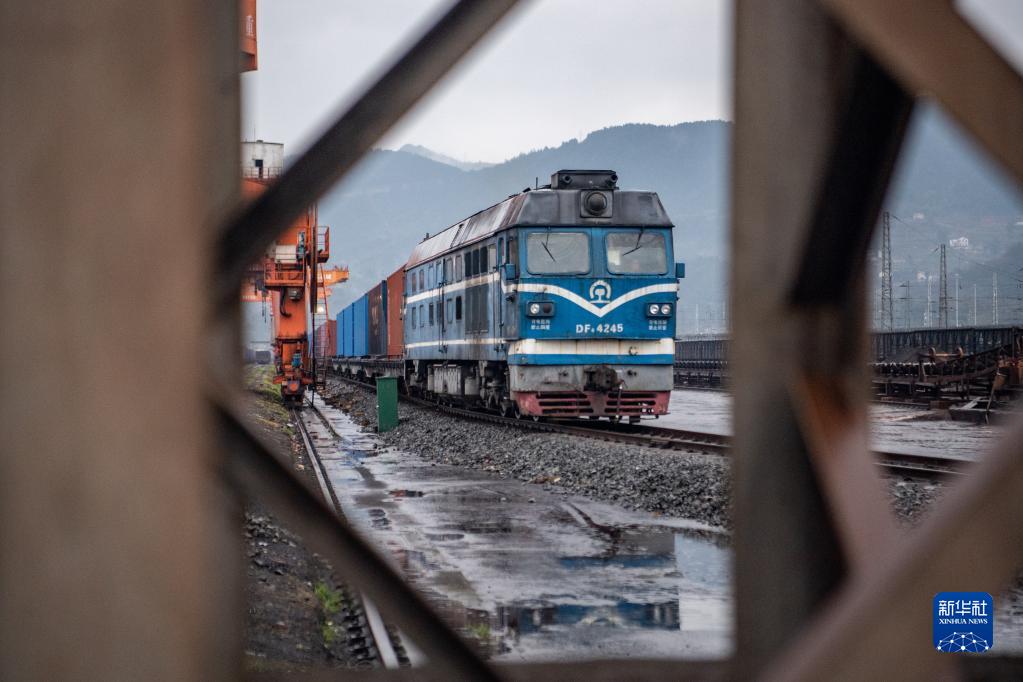 Ein Zug wird am Hafen Guoyuan in Chongqing mit Waren beladen. (19. Februar,