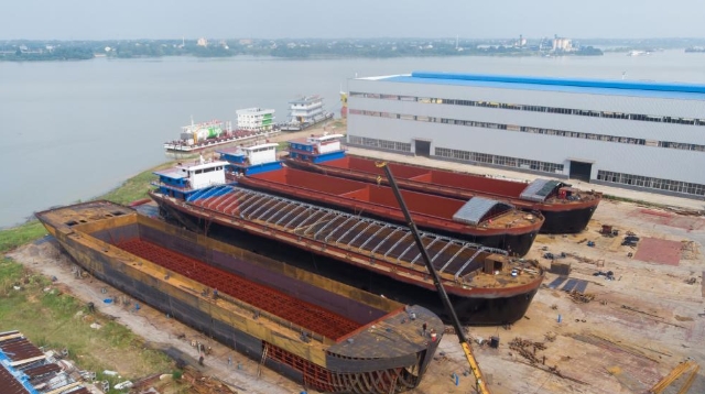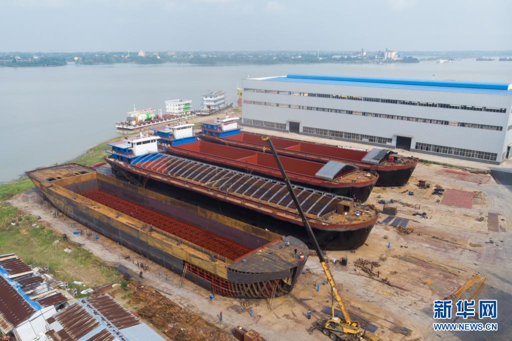 Ein Drohnenfoto von einer Werft in Yuanjiang, wo einige Schiffe gerade hergestellt werden. (Foto von Xinhua, 21. Juli 2021)