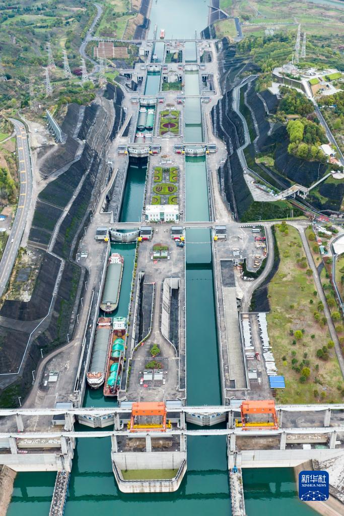 Die fünfstufige südliche Schleusenanlage vor der Wiederaufnahme der Schifffahrt. (Foto vom 22. März 2022, Zheng Jiayu/Xinhua)