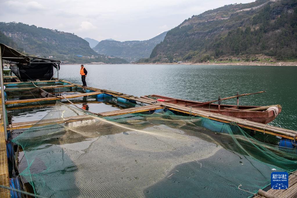 Ein Drohnenfoto von der Domestizierungsbasis für seltene Fische im Gebiet des Drei-Schluchten-Stausees im Jangtse-Fluss. (Foto von Tang Yi, Xinhua, 25. Februar 2022)