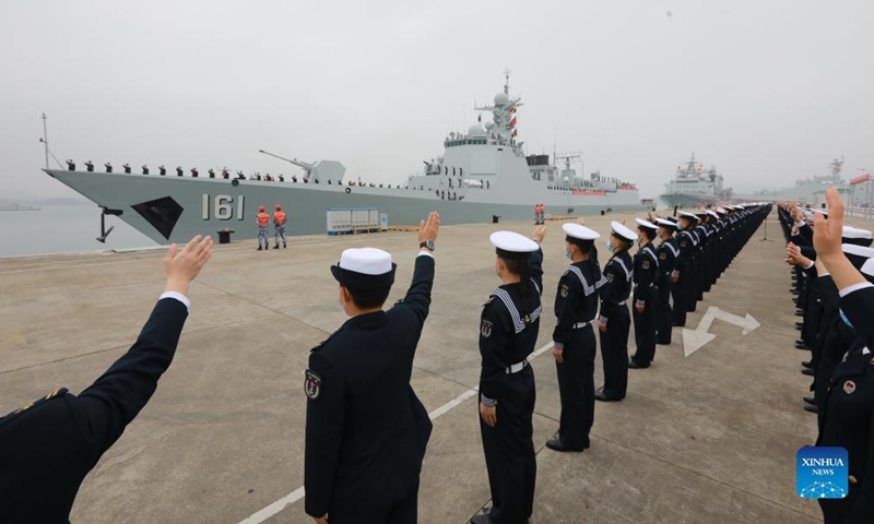 Eine Flotte der chinesischen Marine verlässt am 15. Januar 2022 einen Militärhafen in Zhanjiang in der südchinesischn Provinz Guangdong. (Foto: Xinhua)