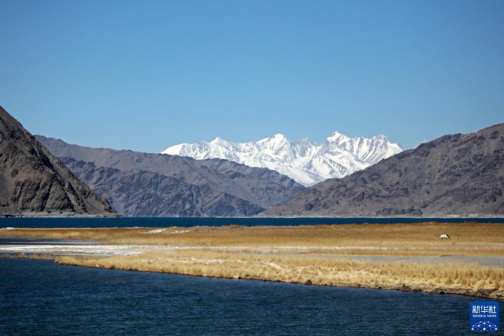 Ein Blick auf den Pangong-See mit einem Schneeberg im Hintergrund (Foto: Shen Hongbing/ Xinhua)