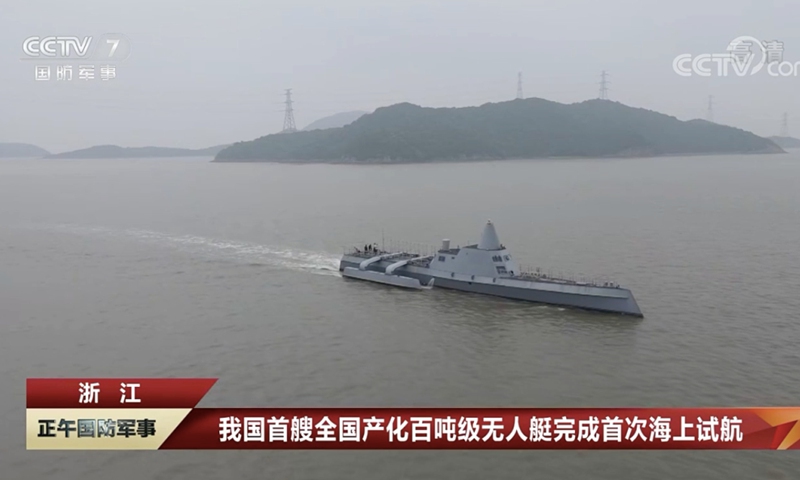 Chinas erstes unbemanntes Überwasserschiff der 200-Tonnen-Klasse unternimmt am 7. Juni 2022 in Zhoushan in der ostchinesischen Provinz Zhejiang seine erste autonome Seeerprobung. Bild: Screenshot von China Central Television