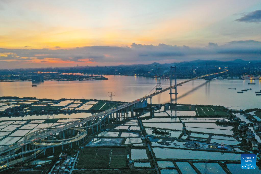 Die Luftaufnahme vom 29. Juni 2022 zeigt einen Blick auf die Nansha-Brücke, die die Städte Guangzhou und Dongguan in der südchinesischen Provinz Guangdong miteinander verbindet. (Xinhua/Liu Dawei)