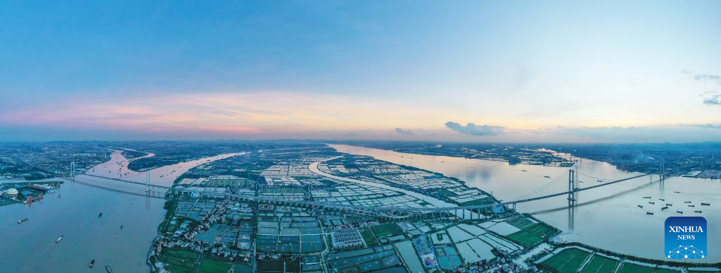 Die Luftaufnahme vom 29. Juni 2022 zeigt das Panorama der Nansha-Brücke, die die Städte Guangzhou und Dongguan in der südchinesischen Provinz Guangdong miteinander verbindet. (Xinhua/Liu Dawei)