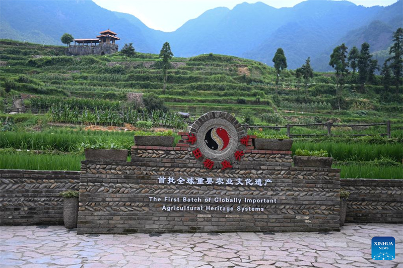 Ein am 18. Juli 2022 aufgenommenes Foto zeigt ein Schutzgebiet des Reis-Fisch-Kokultursystems im Landkreis Qingtian in der ostchinesischen Provinz Zhejiang.