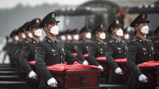 Die Leichen wurden mit einem militärischen Transportflugzeug vom Typ Y-20 zurückgebracht, das von zwei J-20-Kampfflugzeugen begleitet wurde.