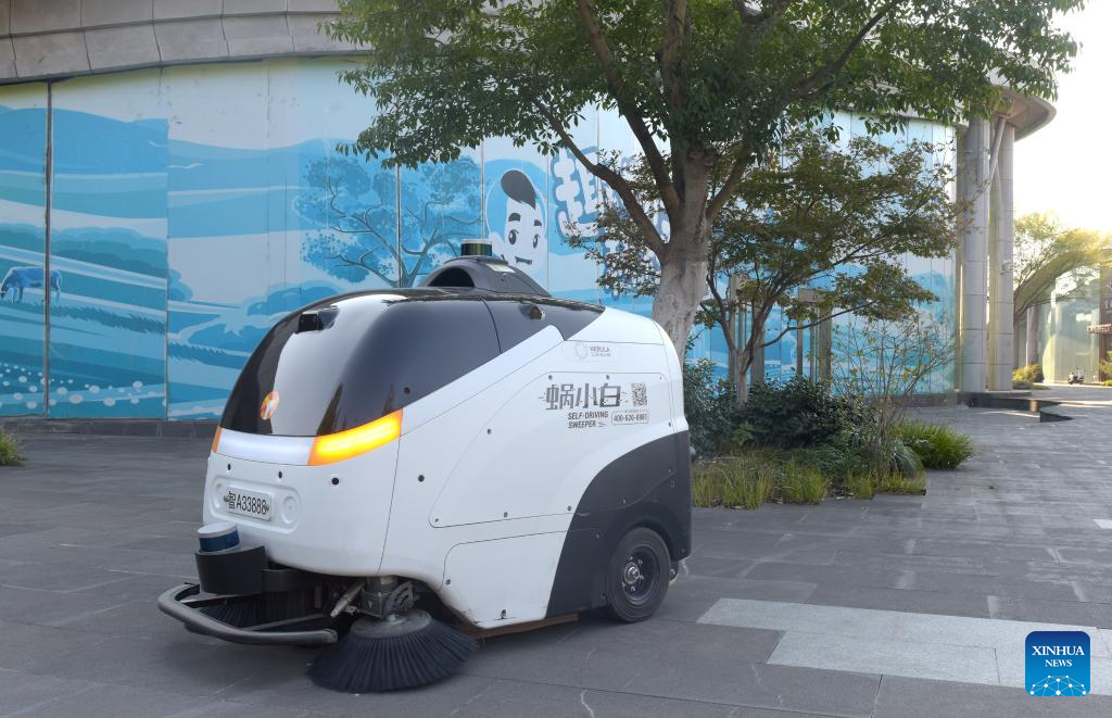 Eine autonom fahrende Kehrmaschine arbeitet im Binhu National Forest Park, 11. Oktober 2022.