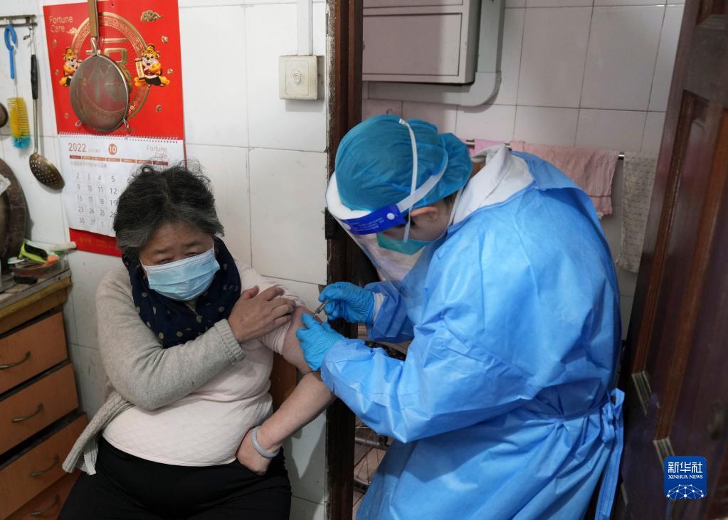 Eine Seniorin wird am 5. Dezember zu Hause in Shanghai gegen COVID-19 geimpft. (Foto von Liu Ying/Xinhua)