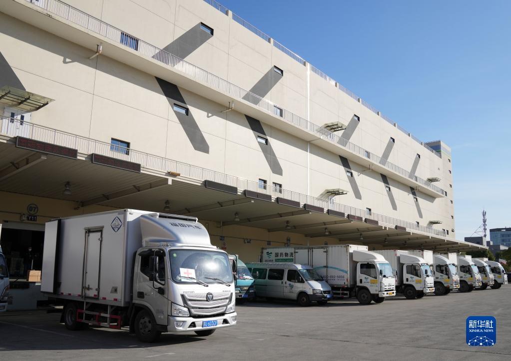 Fahrzeuge werden im Lager Nr. 2 des Logistikzentrums Shanghai von Sinopharm Logistics mit Arzneimitteln beladen. (Foto vom 20. Dezember, Liu Ying/Xinhua)