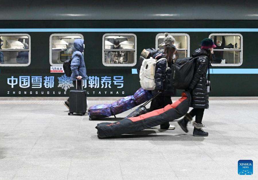 Xinjiang startete am Mittwoch den Zug Y965, einen speziellen Passagierzug für Eis- und Schneereisen. Der Zug mit nur zwei Haltestellen startet in Ürümqi und endet im Kreis Fuyun. (Xinhua, 28. Dezember 2022)