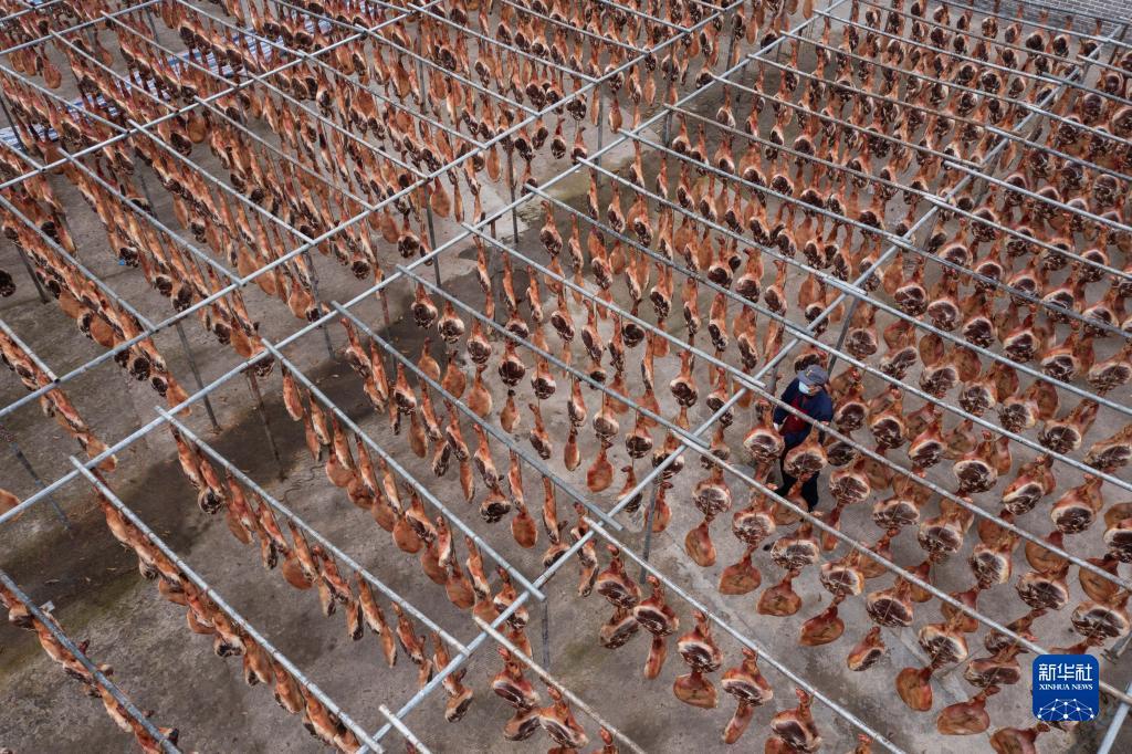 Jinhua-Schinken ist eine Spezialität aus der Stadt Jinhua in der Provinz Zhejiang im Osten Chinas. Im Vorfeld des chinesischen Neujahrsfests, das in der dritten Woche dieses Monats beginnt, ist die Nachfrage nach diesem luftgetrockneten Schinken besonders hoch. Deshalb läuft die Produktion in den Werkstätten in Jinhua derzeit auf Hochtouren.