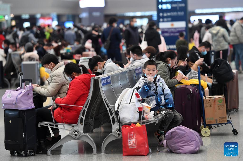 Passagiere warten am Ostbahnhof Nanning im südchinesischen Autonomen Gebiet Guangxi der Zhuang-Nationalität. (Foto vom 27. Januar, Lu Boan/Xinhua)