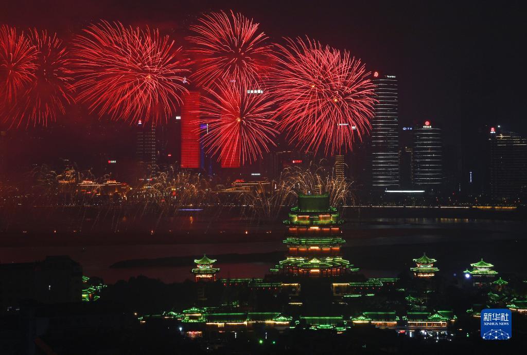 Die Feuerwerk-Gala zur Feier des Frühlingsfests in Nanchang, der Hauptstadt der südostchinesischen Provinz Jiangxi. (Foto vom 22. Januar, Wan Xiang/Xinhua)