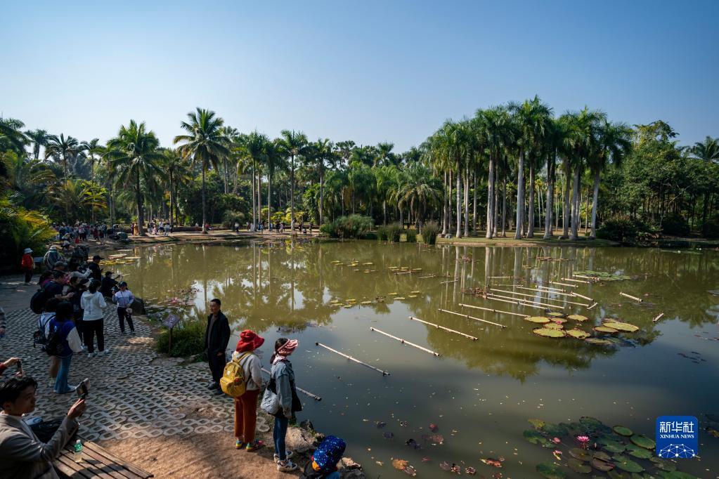 Touristen besuchen den tropischen botanischen Garten Xishuangbanna der Chinesischen Akademie der Wissenschaften. (Foto vom 12. Februar 2023, Xinhua)