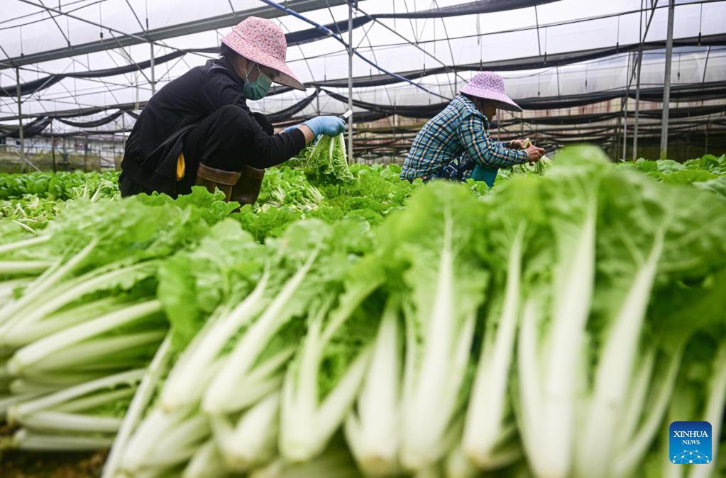 Landwirte ernten Gemüse in der Gemeinde Poxin im Kreis Tunchang in der südchinesischen Provinz Hainan. (Foto vom 24. Februar, Xinhua/Pu Xiaoxu)