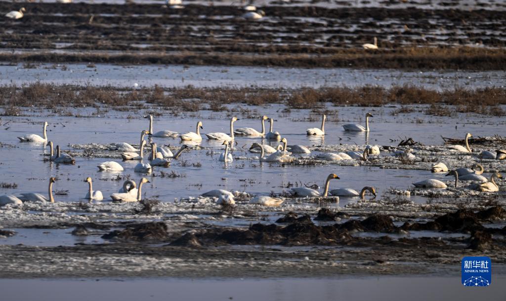 Schwäne ruhen sich im Sumpfgebiet aus und suchen nach Futter. (Foto: Lian Zhen/ Xinhua)