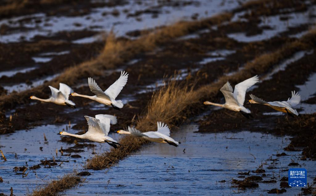 Schwäne fliegen über den Gelben Flusses beim Kreis Toketuo. (Foto: Lian Zhen/ Xinhua)